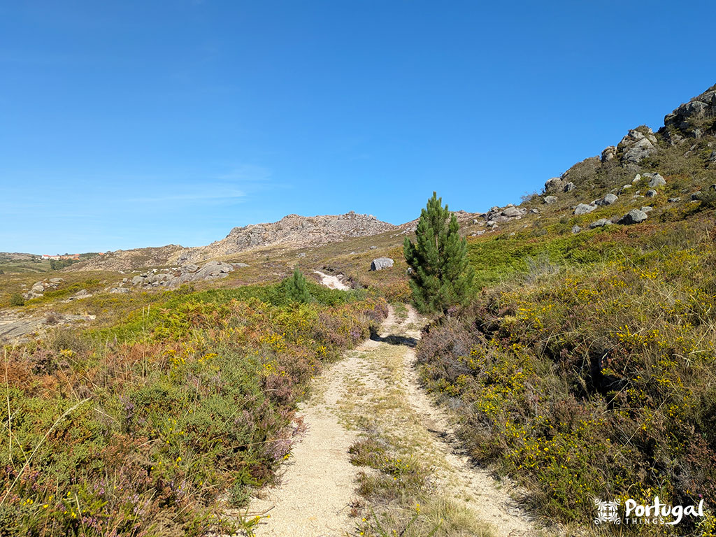 Se não quiseres fazer o percurso completo, há uma variante que encurta cerca de 5 km. Depois da subida junto ao Bico do Patelo (ponto 42.021675, -8.139019), podes cortar diretamente para a aldeia de Cainheiras e continuar o trilho por aí.